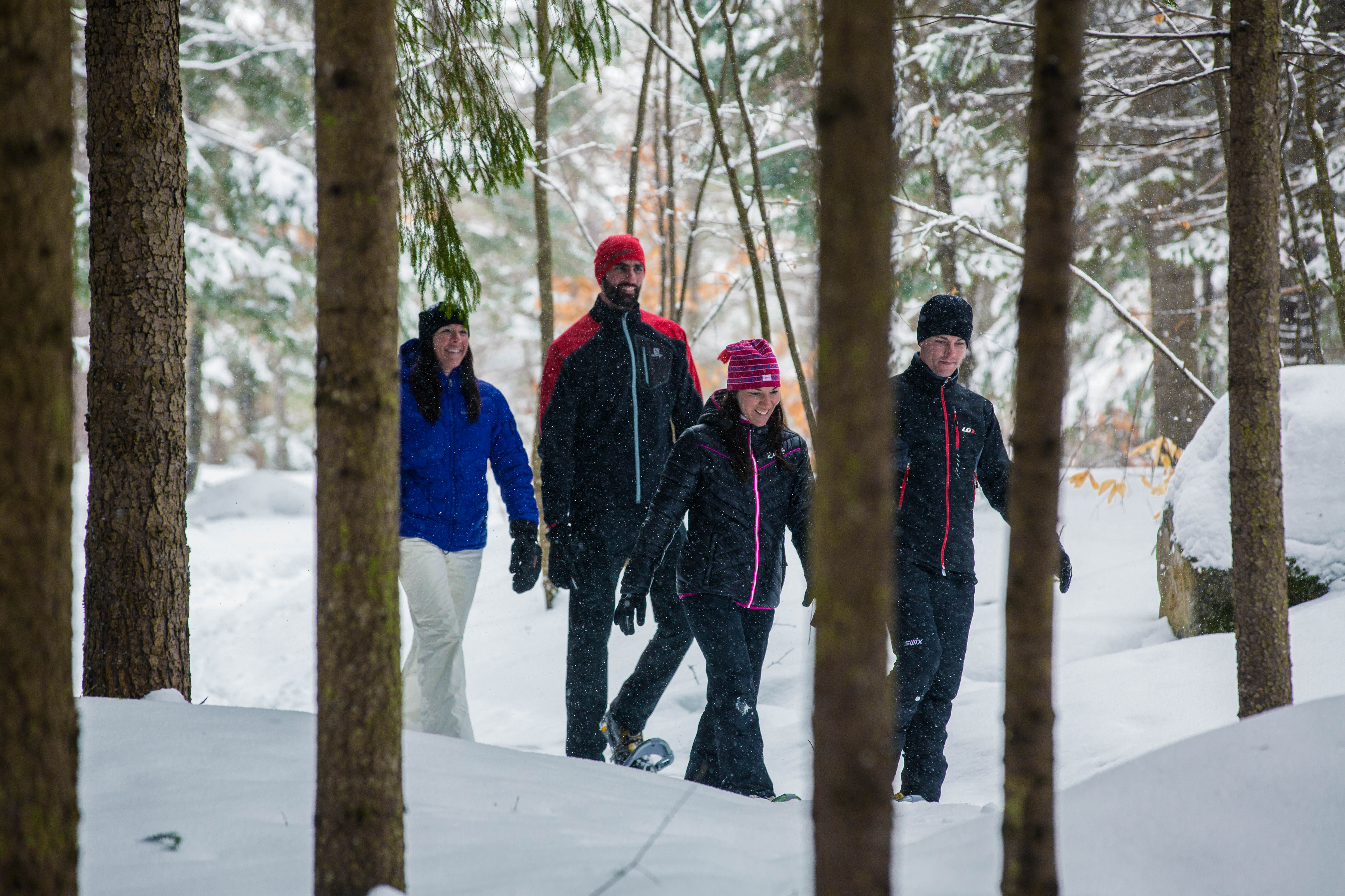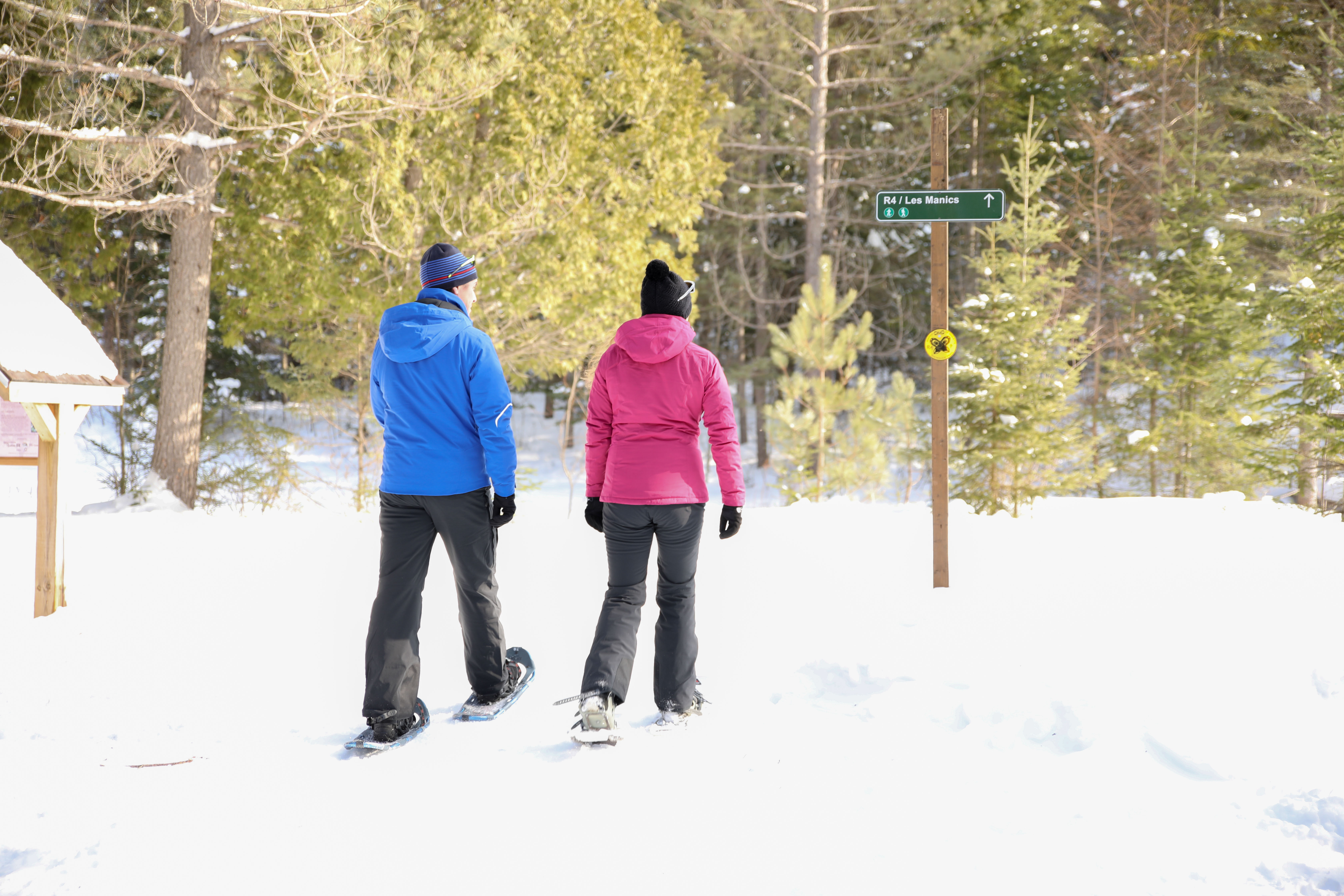 Discover our beginner to expert trails with a full day access to our cross-country network in Domaine Saint-Bernard. We offer 32 km of classic and skate cross-country skiing trails, 22 km of snowshoeing trails and 4 km of walking trails. All of our trails are maintained and groomed. Come have the birds feed from your hands, surprise some deer, and take a break in a shelter next to a warm fire!
