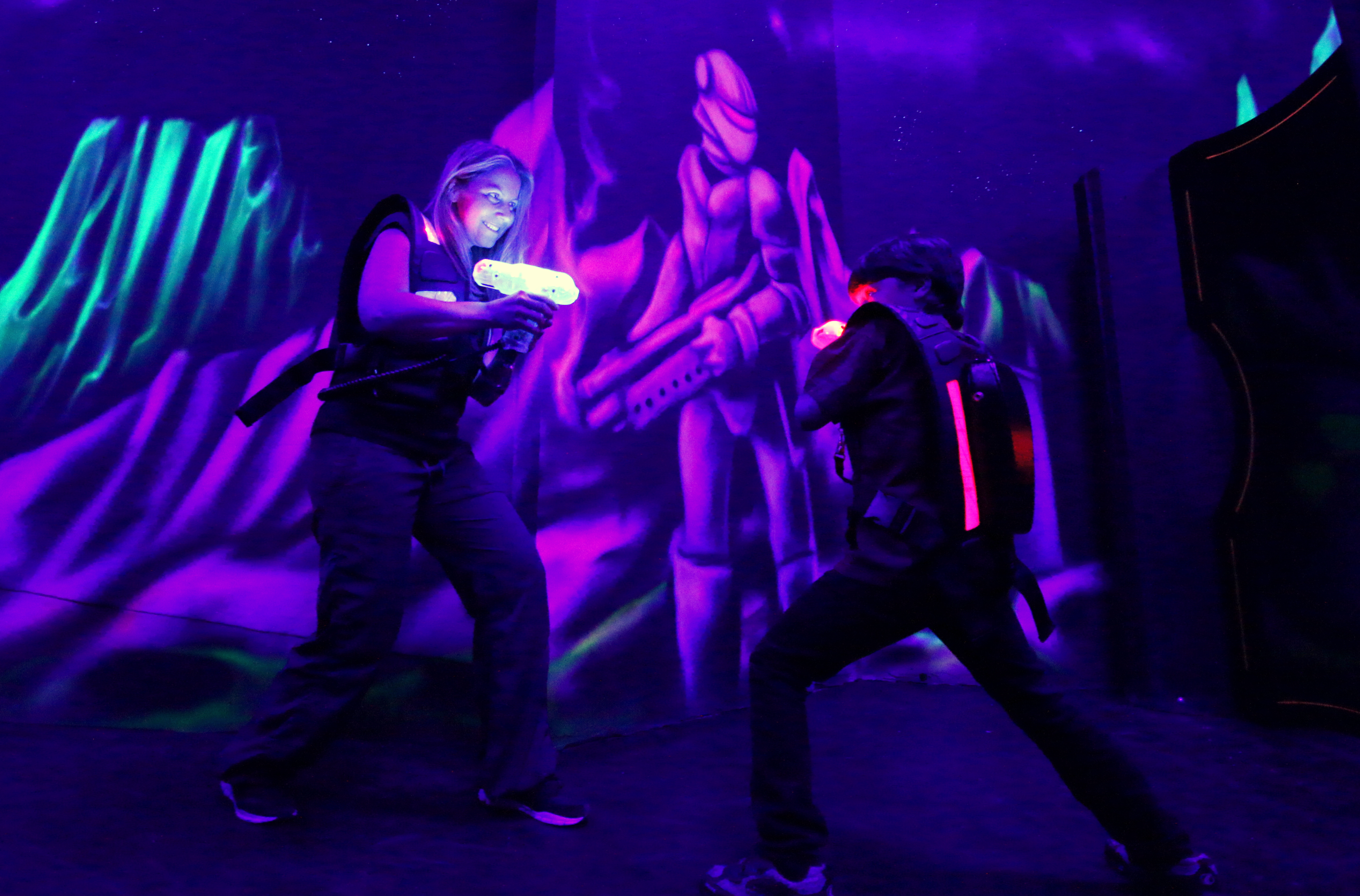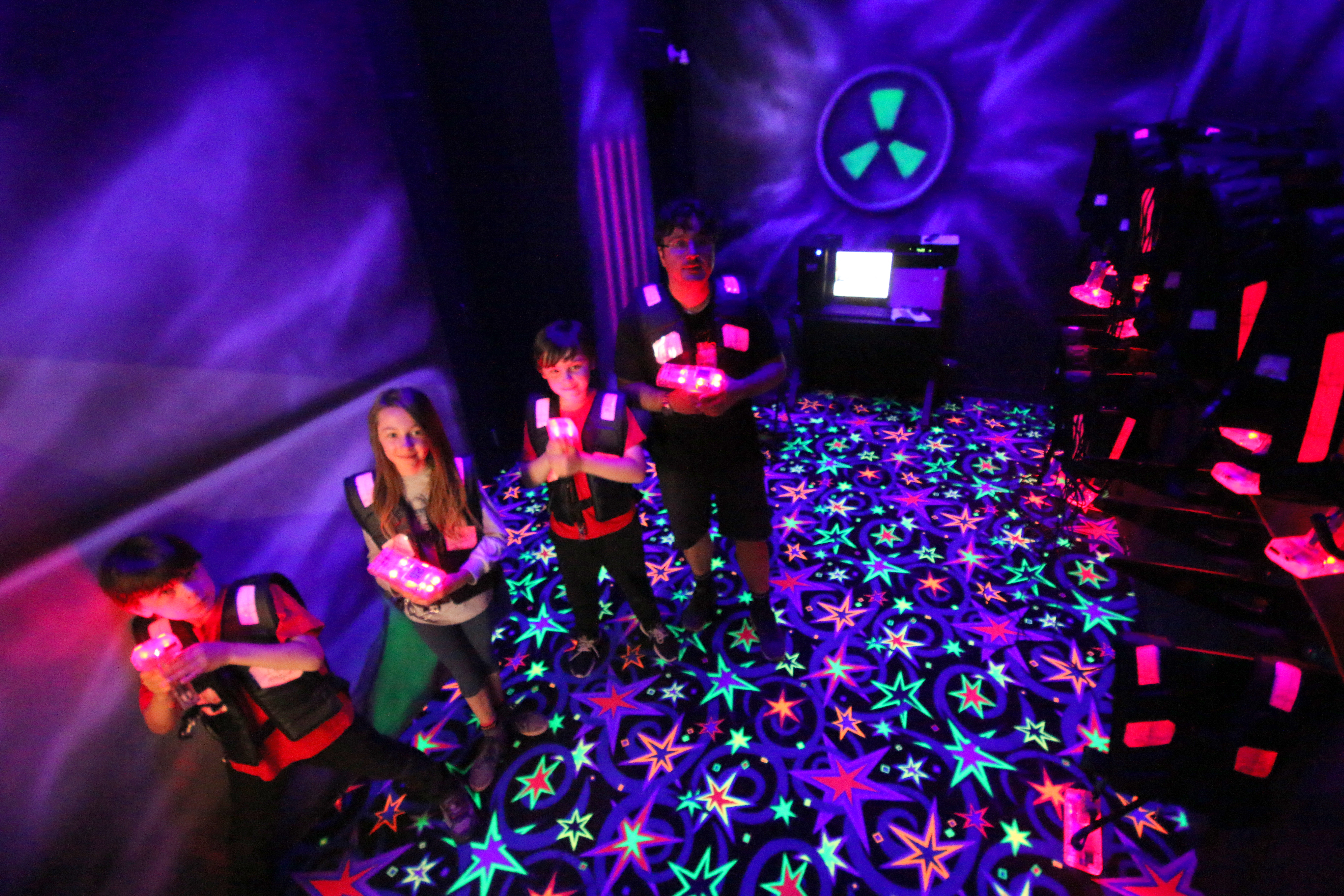 The high-tech gear includes a laser tag phaser and a next-generation target vest. The room is an experience in itself, and your heart is already pounding. High-energy music, flashing lights, add to the excitement as you get ready to go!