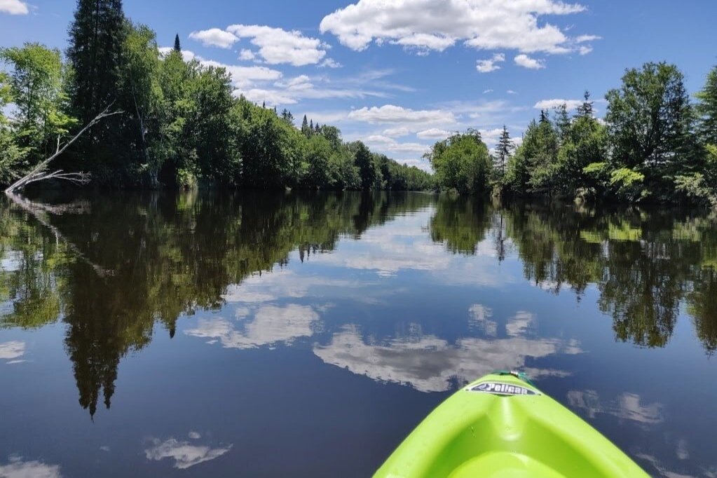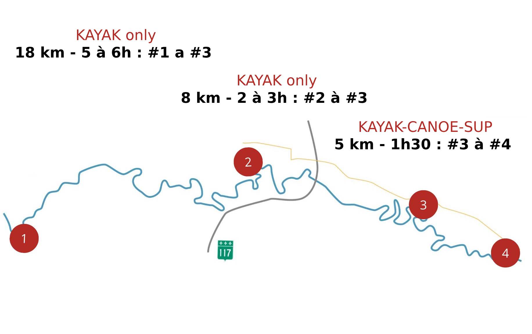 Our self-guided kayaking activity begins at our dock on the Rivière du Diable, after a short 5-minute walk along our trails, and ends 5 km further, at the meeting point for the return shuttle which picks you up 2 hours after your departure. It gives you plenty of time to enjoy the river and its beaches since the route can be completed in less than 1 hour 30 minutes if you paddle non-stop.