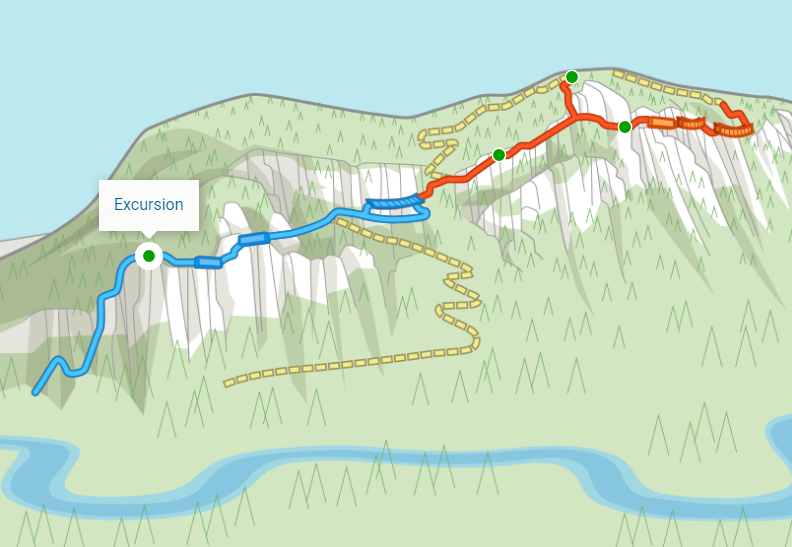 Our green route is 500 meters long, and the entire experience takes about 3h30, including a 20-minute walk back to the departure point. This activity is open to individuals aged 11 years and older. Our experienced guides will lead you on an unforgettable excursion, clipped in to a steel cable that runs the length of the Vache Noire cliff. After making a 200-meter ascent, there are spectacular views of the mountains and river valley. Expect some physical exertion during the excursion, as well as some adrenaline as you navigate the high terrain.