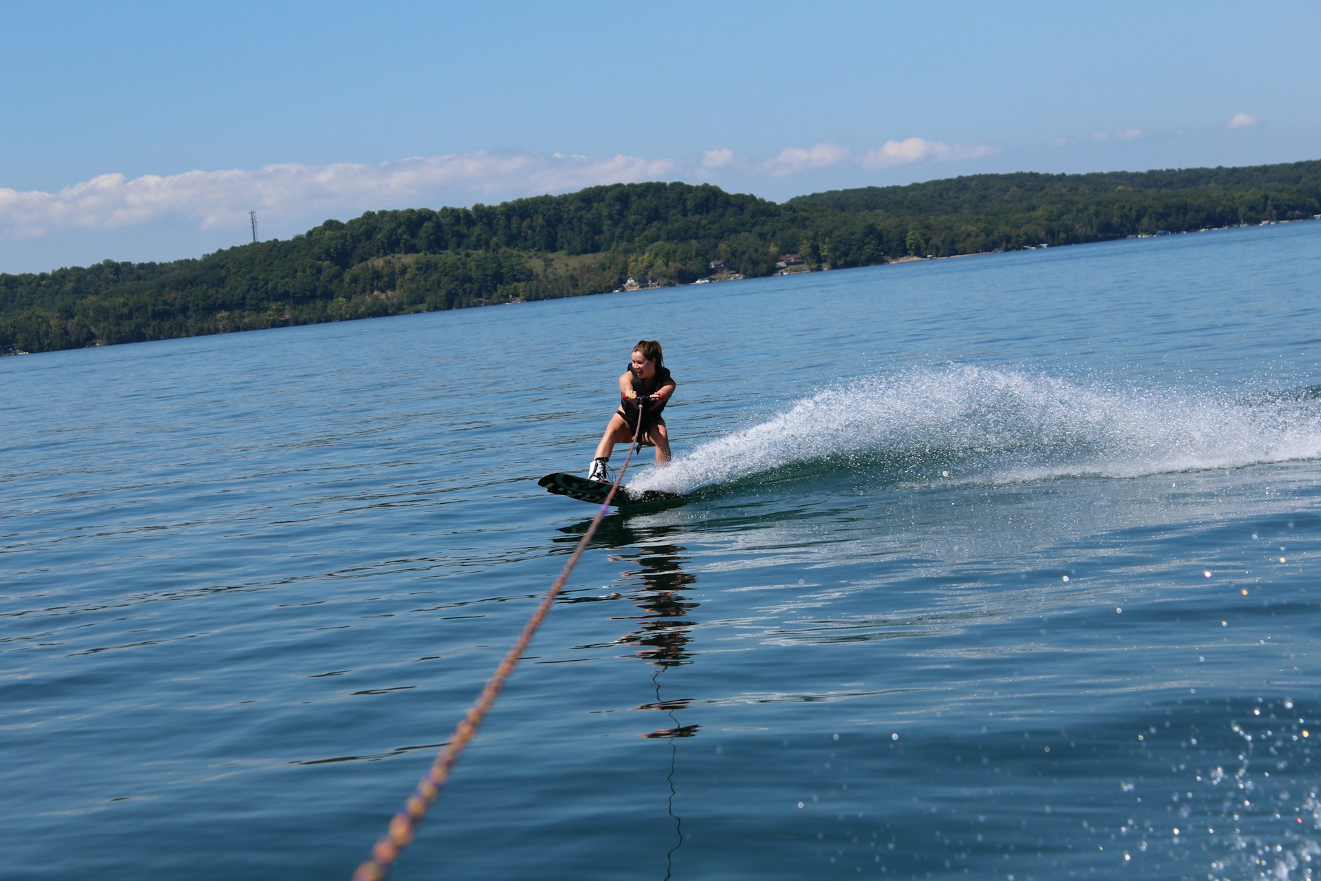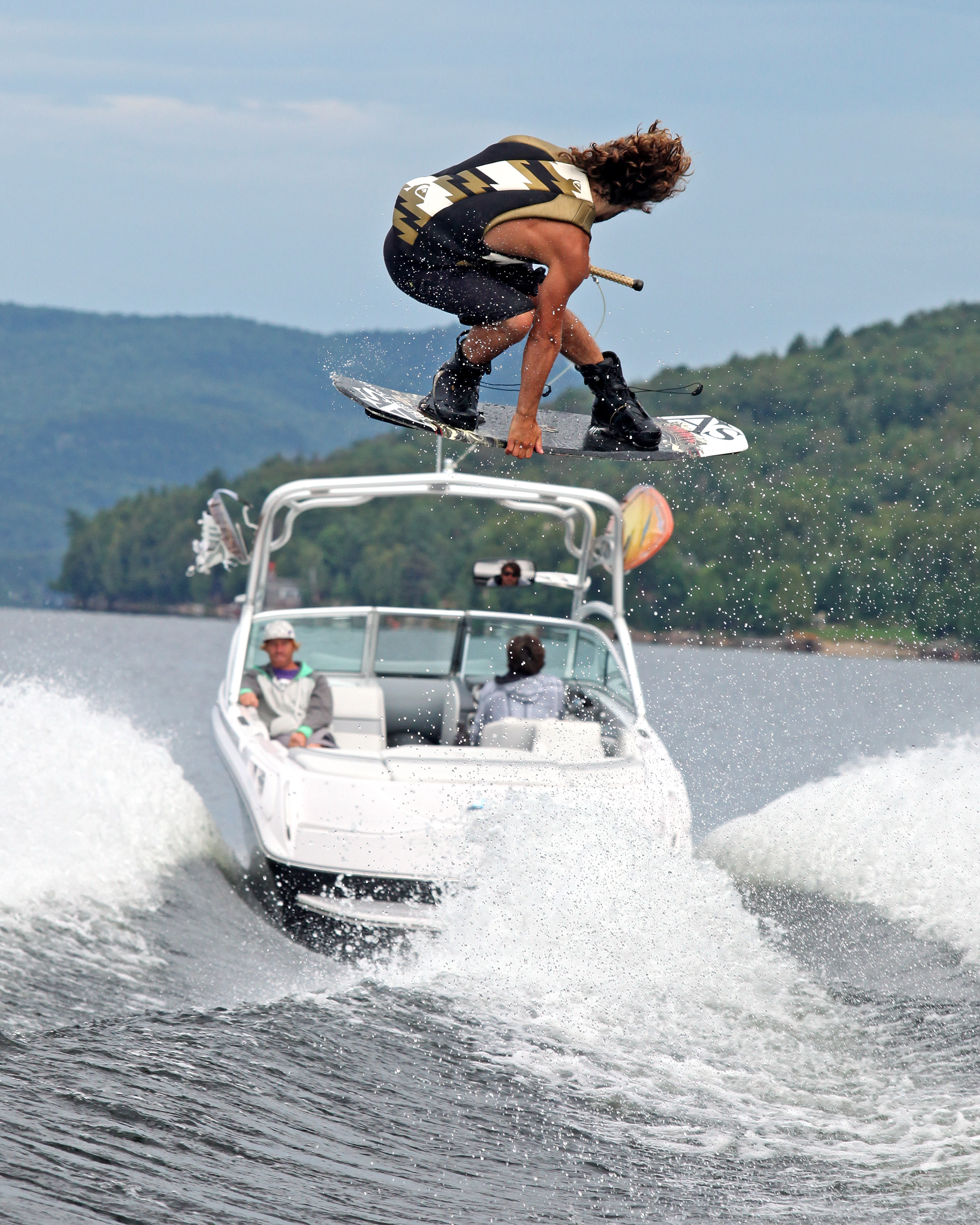 Wakeboarding on Lake Tremblant is one of the fun outdoor activity that we offer during summer season! Our certified instructors have years of teaching experience and are always happy to share their passion for their sport. When you reserve for a wakeboard rental or other watersport, all the equipment, plus the boat, captain, and our instructor are included. To get better waves, we have one boat for waterski and tubing and one boat for wakeboard and wakesurfing. If you choose tube and wakeboard or wakesurf, you might change boat during your activity. It is possible to change between wakeboard and waksurf during the time of the activity. You choose the duration you want and it can be shared among your group.
