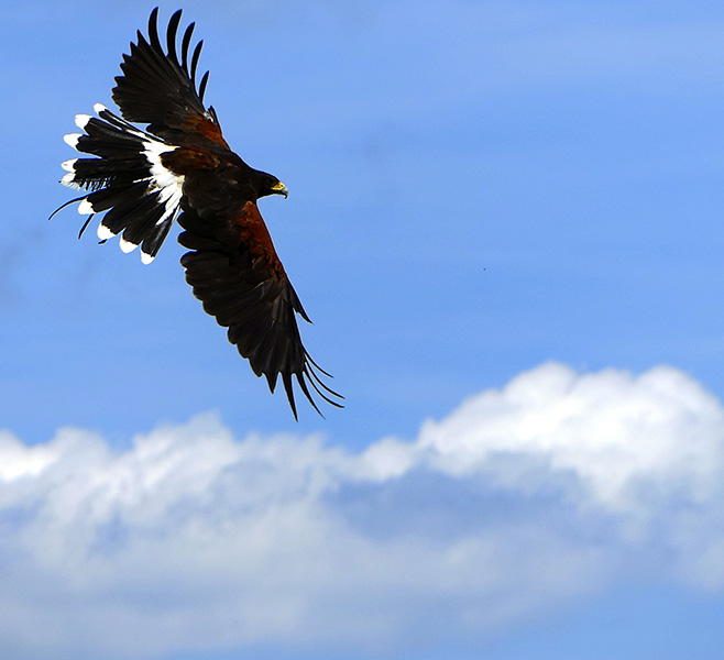 - Falconer & trained Harris Hawk