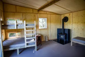 1 to 2 double beds and 2 to 4 singles (mattresses only, you must bring your own sleeping bag and pillow).