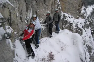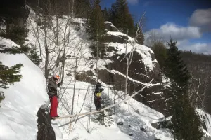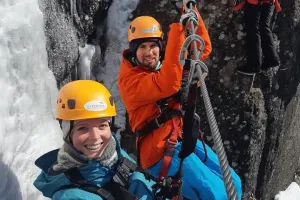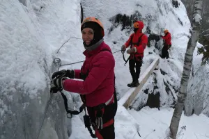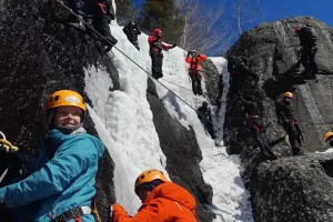 • Équipement (casque, bottes d'escalade de glace, crampons et piolets)