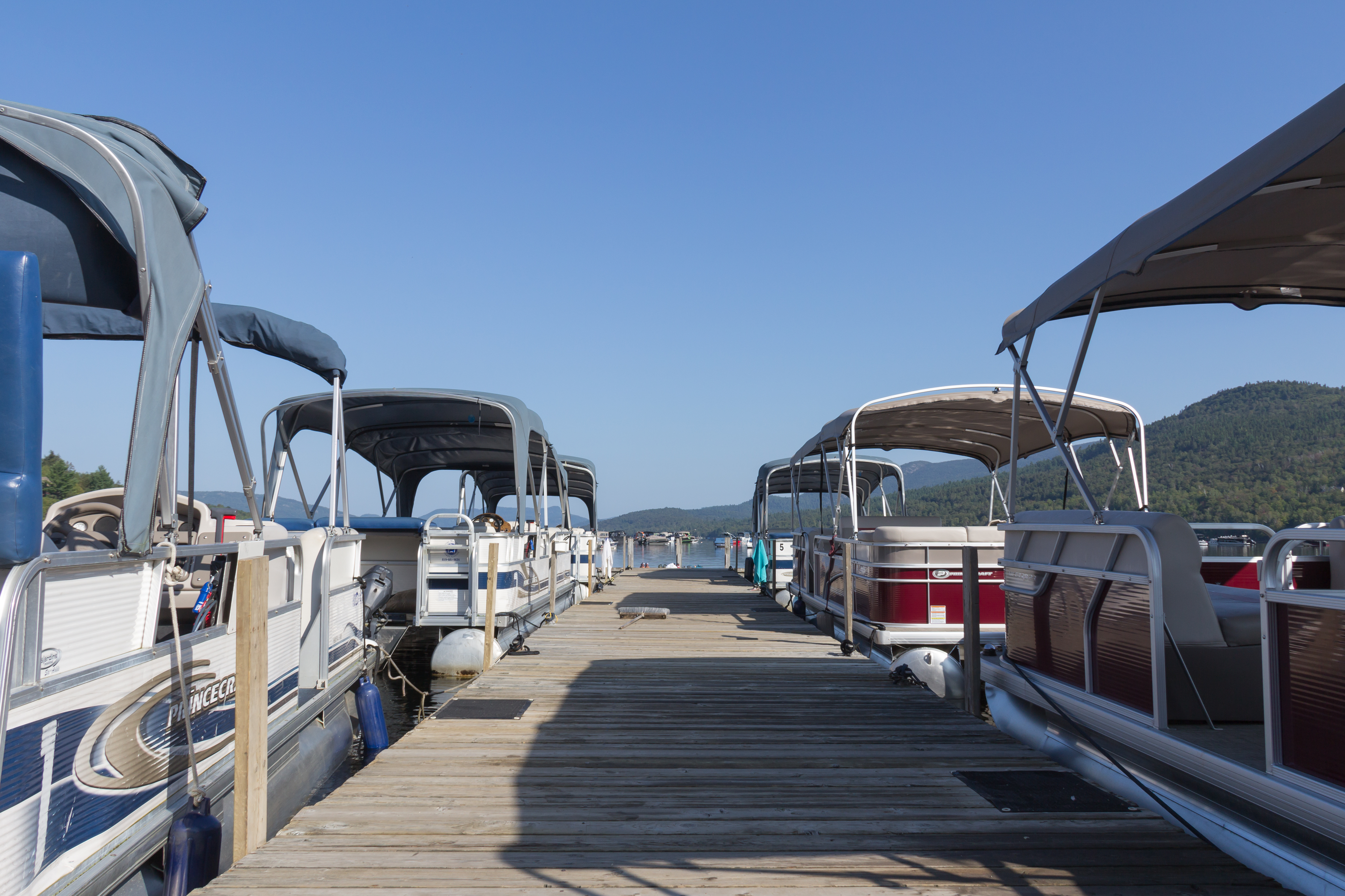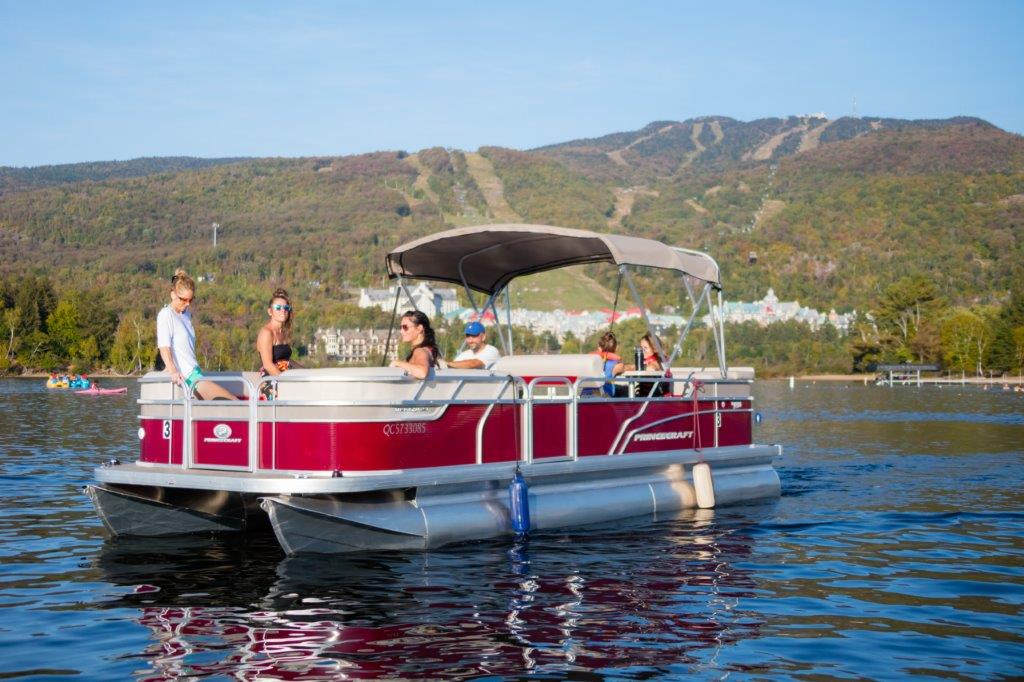 Plusieurs embarcations à basse vitesse (9.9 forces) sont disponibles. Elles ne sont pas rapides mais sont parfaites pour naviguer et admirer le paysage du lac Tremblant. Du bateau de plaisance aux pontons comfortables pouvant accueillir plusieurs passagers, il y en a pour tous les goûts! Nos pontons sont équipés de plateformes, de sofas, d’une table, de glacières intégrées et d’un toit amovible.