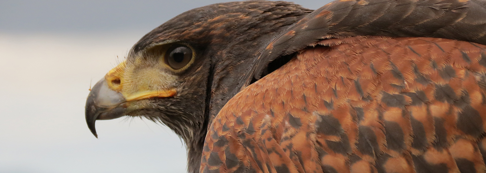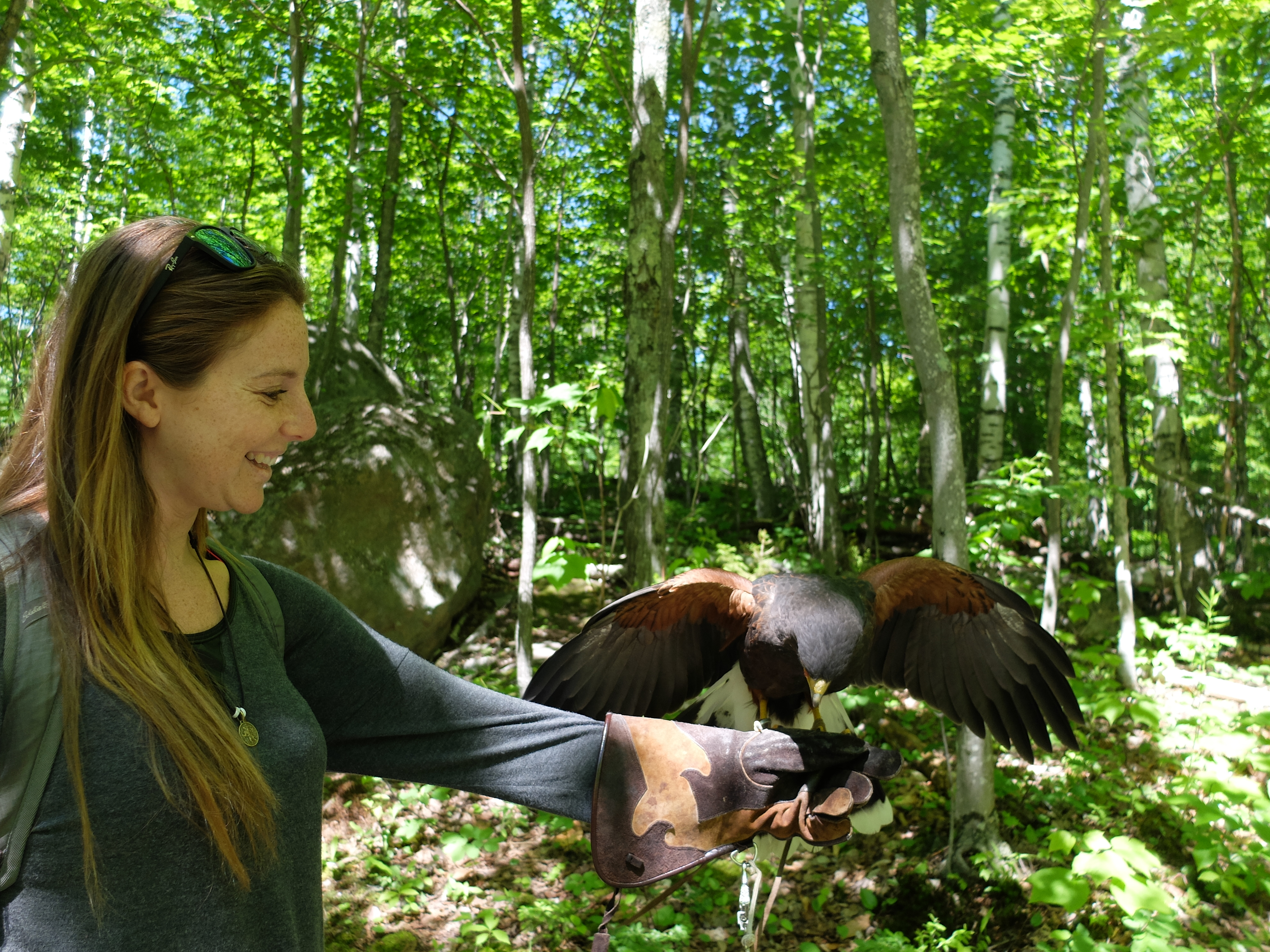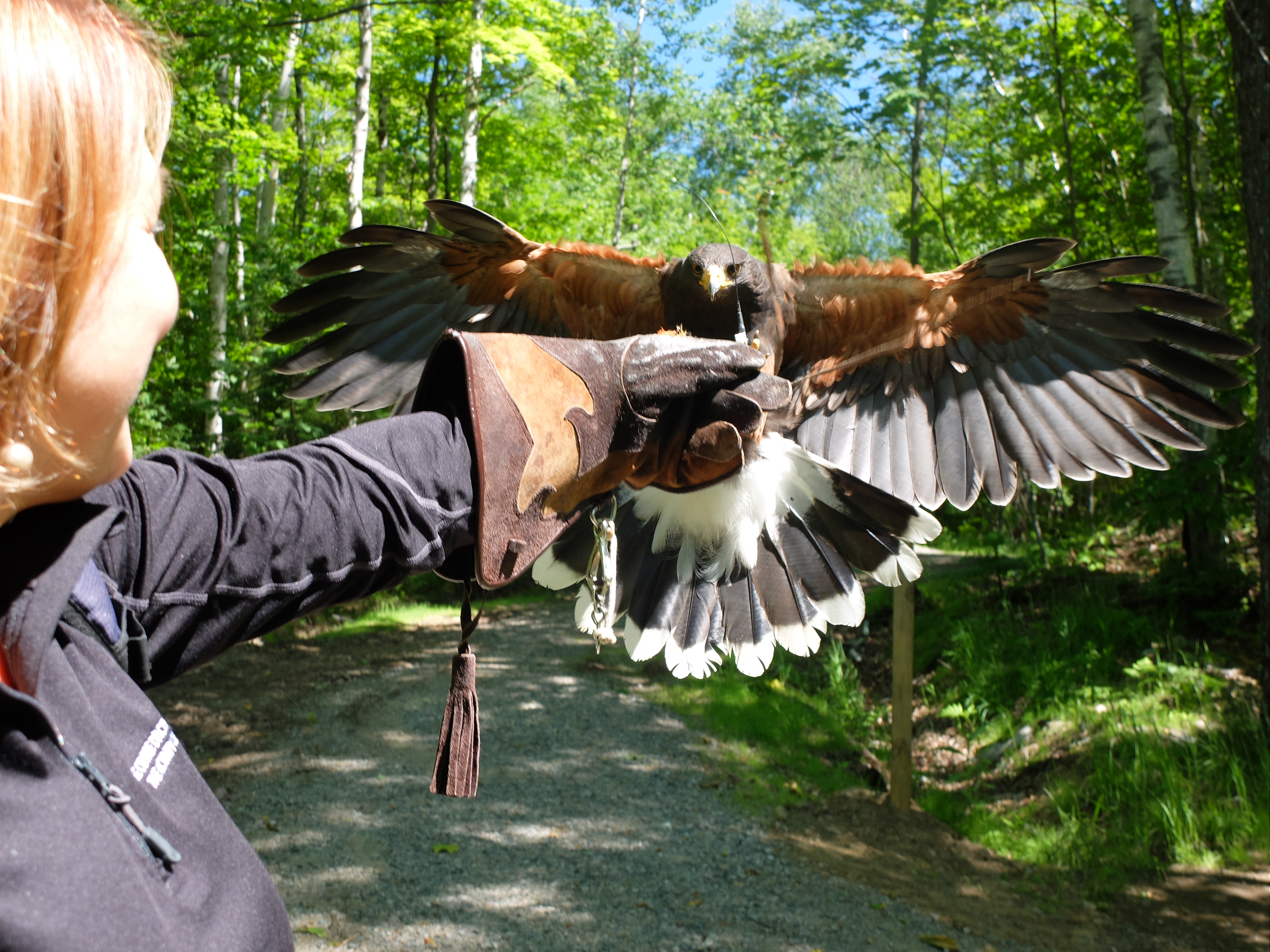 - Guide-biologiste et un faucon Harris dressé