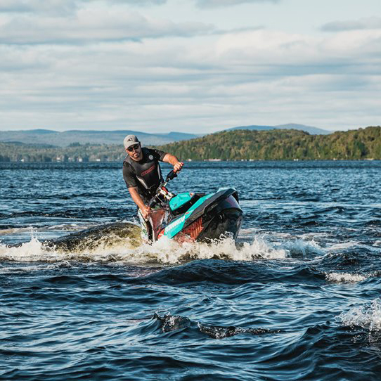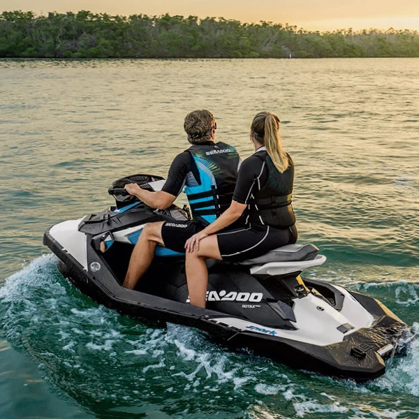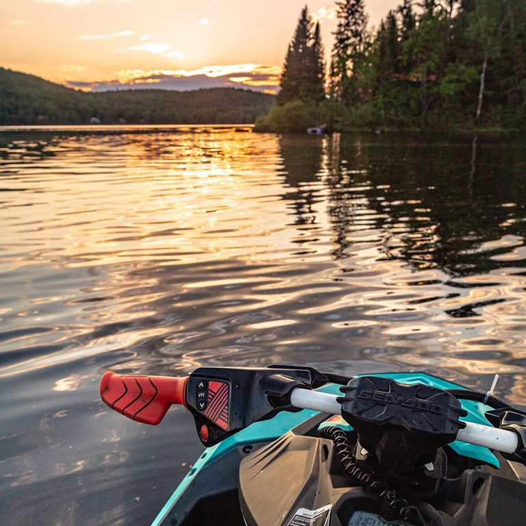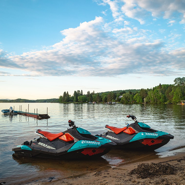Nous proposons la location de motomarines neuves, légères et faciles à manipuler, pouvant asseoir deux personnes. Équipées d’un moteur à quatre temps Rotax de 900 cc et d’un système de freinage et de marche arrière intelligent (IBR), les motomarines Sea Doo Spark sont conçues pour que des débutants soient aptes à les manœuvrer et à faire quelques figures sur l’eau avec un peu de pratique. Debout ou assis, vous pourrez découvrir ce sport excitant seul ou avec un passager sur notre lac de 9 km de long.